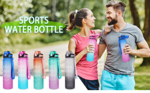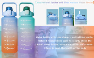 1L Water Bottle with Straw, Motivational Fitness Sport Timer