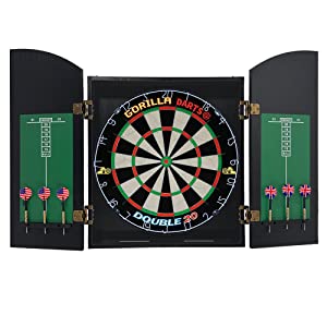 Gorilla Aluminium Darts Centre with Cabinet Set Double 20 Dartboard inc Darts Package