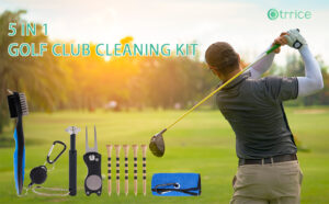 Otrrice Golf Accessories 5 in 1 Golf Club Cleaning Kit – Golf Towel, Golf Club Brush with Groove Cleaner, Golf Groove Sharpener, Foldable Divot Repair Tool with Ball Marker, Golf Tees (Blue)
