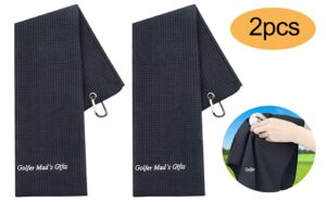 2Pack Embroidered Golf Towels 23.6″X16″ Golfer Mad's Gifts Towel Microfiber Fabric Golf Bag Towel with Carabiner Clip Funny Golf Accessories Mens Golf Gifts Clean Golf Balls for Golfers, Golf Bags