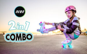 Yvolution Neon Combo Skates | 2-1 Quad and Inline Skates for Kids with LED Wheels | Adjustable Sizing (Green, 3-6)