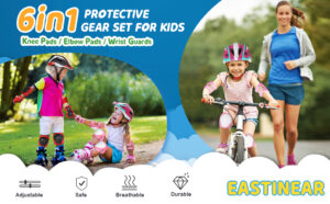 EASTINEAR Kids Knee Pads Elbow Pads Wrist Guards for Ages 3-9, Skateboard Protective Gear Set 6 in 1 for Boys and Girls, Toddler Safety Pads for Bike Roller Skate Scooter Rollerblade