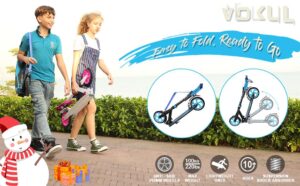 VOKUL Scooter Foldable Kick Scooters for teenagers & adults from 12 years, Big Wheel Scooter 205 MM | City scooter height adjustable | Shock absorber | Shoulder strap | Capacity up to 220lbs