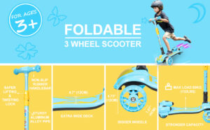 Riding'times Electric Scooter for Kids Ages 4-12, Foldable Kids E Scooter with Kick Start Boost and Rear Brake, 3.5H Charging time, Kick Scooters for Kids, Girls, Boys