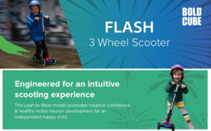 BOLDCUBE 3 Wheel Kids Scooter Foldable Height Adjustable Kick Scooter, Flashing LED Light Up Wheels, Birthday Gift for Boys Girls Aged 5 to 10 Years