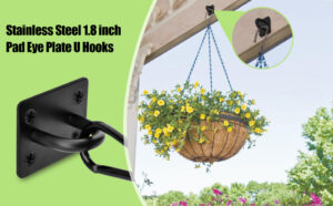 Joosexin 4 Set M6 Oblong Pad Eye Plate and Carabiner Clips U-shaped Stainless Steel Staple Hook Loop Suspension Ceiling Hook Loop with Screws and Plastic Plugs Eye Plate Black Marine Hardware