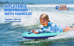 HeySplash Inflatable Bodyboard with Handles, Portable Lightweight Body Board Swimming Floating Surfboard for Travel, Beach Surfing, Swimming, Summer Water Fun Activity