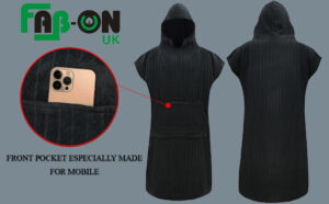 FAB-ON UK Changing Robe Bath Towels Poncho for Swimming Outdoor, Beach, Light Weight, 100% Cotton Changing Towel with Mobile Front Pocket, Hooded Surf Poncho for Men & Women Grey