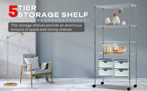 AmazonBasics 5-Shelf Shelving Unit Create valuable vertical space with this sleek-looking shelving unit from AmazonBasics. Combining contemporary good looks with a conveniently adjustable design, the five-shelf unit quadruples your shelf space, with each wire shelf holding up to 158.7 kg max (evenly distributed). A useful addition to any living space or storage area, the five-shelf shelving unit offers remarkable strength, convenience, and versatility. Works Anywhere Placed in the kitchen, the shelving unit holds anything from canned goods and bulk items to pots and pans, stand mixers, dishes, and bowls. In the living room, the shelving unit beautifully displays books, magazines, board games, and more, while in an office setting, it can help keep files, documents, and supplies neatly organized. For small dorm rooms, the five-shelf shelving unit makes use of available vertical space for keeping clothes, snacks, text books, and more neatly organized and easily accessible. The shelving unit can also be used to help keep garage clutter under control; it works great for heavy cans of paint, toolboxes, gardening supplies, extension cords, and more. The shelving unit quickly provides added shelf space, wherever it’s needed most. Adjustable-Height Shelves Create custom-height shelves–no tools required–with the AmazonBasics five-shelf shelving unit. Simply clip together the two-part, black, plastic sleeves around the posts and at the height you want the shelf to sit. With four sleeves in place on each post and at equal height, lower the shelf down into place. Raise the shelf and move all four sleeves to a new position for more or less height, as desired. The sleeves can be placed higher or lower in 2.54-cm increments for ultimate customization. Check Offer Price Weight: 14.1 kg Dimensions: 91.44 x 35.56 x 182.88 cm; 14.09 Kilograms Brand: Amazon Basics Model: SL-SUAM-117 Colour: Chrome Colour: Chrome