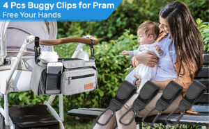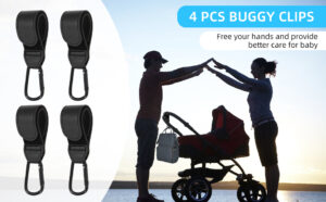 Buggy Clips, 4 Pcs Pram Clips, Adjustable Black Pram Hooks for Bags, Velcro Pram Clips for Buggy, Durable Buggy Clip for Pram for Stroller Diaper Bag, Shopping Cart, Pushchair, Backpack (4PCS)