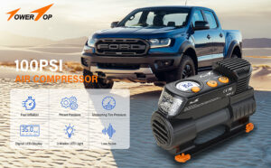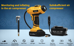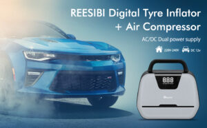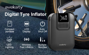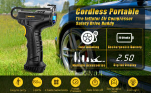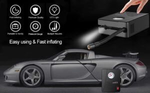 Enocos Portable Tyre Inflator Pump, DC 12V Car Tire Air Compressor, Auto Shut Off Feature, Digital LCD Display, Emergency LED Flashlight, for Car Truck Motorcycle Bicycle Tires