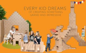 GIGI Bloks XXL Cardboard Building Blocks | Mega Fort Building Kit 200 XXL Piece Set | Interlocking System Allows Cardboard House Creation | Fort Building Kits For Kids | Cardboard Bricks | Big Blocks