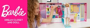 Barbie Dream Closet & Blonde Barbie Doll – Expanding Closet with Rotating Clothes Rack – Includes 25+ Pieces – 4 Outfits – 2′ Wide – Gift for Kids 3+