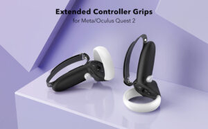 Extended 1.56″ Controller Grips for Oculus Quest 2 VR Anti-Throw Grip Cover Suitable for Large Hands with Battery Opening & Adjustable Knuckle Straps Accessories for Meta Quest 2
