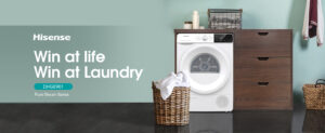 Hisense DHGE901 60cm Freestanding 9 KG Heatpump Front Load Tumble Dryer – 16 Programmes – Cupboard Dry – Air Refresh – Start Delay – White [Energy Class A++]