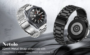 Netolo 22mm Metal Strap Compatible with Samsung Galaxy Watch 3 45mm/Galaxy Watch 46mm/Huawei Watch GT2 46mm/GT2 Pro, Stainless Steel Strap Compatible for Samsung Gear S3 Frontier/Classic, Black/Silve