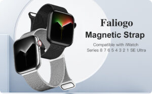 Faliogo Metal Straps Compatible with Apple Watch Strap 38mm 40mm 41mm, Stainless Steel Magnetic Replacement Band for iWatch Series 8 7 6 5 4 3 2 1 SE for Women Men, 38/40/41mm, Black