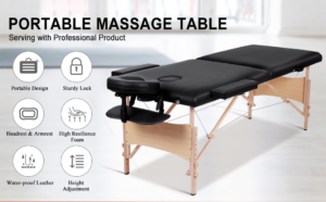 JL Comfurni ® Portable Massage Table 3 Section All-Inclusive Folding Couch Bed for Tattoo Beauty Salon Therapy with Aluminum Frame -Black