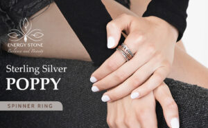 Energy Stone Poppy Sterling Silver Meditation Spinner Ring with Copper Spinners (Style UK75)