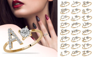 Adjustable Initial Letter Rings for Women Girls A-Z Gold Studded Zirconia Stackable Alphabet Rings Jewelry Accessory Gifts