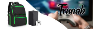 Trunab Travel Backpack Compatible with Xbox Series X/S Console, Carry Case Game Storage Bag with Inner Divider, Multiple Pockets for 15.6” Laptop and Game Accessories (Patent Pending)