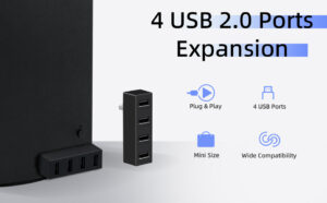 Xbox Series X/S USB Hub 2.0,Mcbazel 4 Ports Multiport USB Extender High Speed USB Hub Portable Splitter Expansion Adapter Compatible with Xbox Series X/S Console – Black