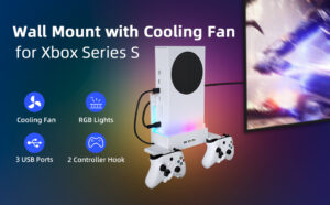 Wall Mount Bracket with RGB Cooling Stand Compatible with Xbox Series S Console,Mcbazel Xbox Series S Wall Mount With Dual Cooling Fan with 2 Hook-White
