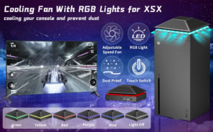 Cooling Fan for Xbox Series X with RGB LED Light Strip, Wiilkac 3 Levels Adjustable Speed Cooler Fan System Built-in Dust Fliter, Low Noise Top Fan with Independent Fan&Light Touch Switch