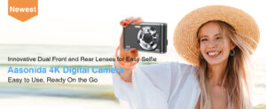 Digital Camera 4K, 48MP Autofocus Camera Selfie with Front and Rear Dual Lenses, 32GB Card, 2 Batteries, 16X Digital Zoom, Compact Travel Vlogging Video Camera for Kid Teen Beginner (Black)
