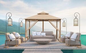 ABCCANOPY 3x3M Gazebos With Netting for Patios Double Roof Soft Canopy Garden Backyard Gazebo for Shade and Rain (Gray)