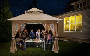ABCCANOPY BBQ Grill Gazebo Double Tiered Outdoor Gazebo Canopy with LED Light (Burgundy)