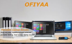 OFIYAA P2 12″ Display Triple Portable Monitor Laptop Monitor Extender FHD 1080P IPS 270° Plug and Play 4 Speakers Dual Monitor Laptop for Multiple Laptops Compatible with 13″-16″ Notebook/Mac