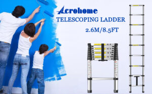 Acrohome 2.6M Telescopic Ladder Multi-Purpose Aluminium Telescoping Ladder Extension Extend Portable Ladder Foldable Ladder EN131 and CE Standards