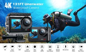 4K 20MP Action Camera Dual Screen 40M Waterproof Underwater Camera, WiFi Sports PC Webcam with EIS Remote Control, Charger and 2 Batteries