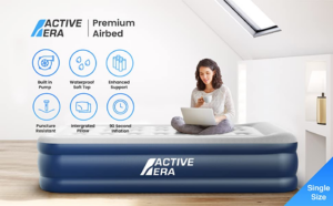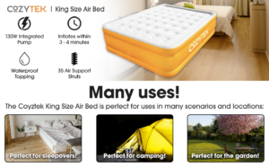 Nifusu Air Bed Double Built-in Pump, 203 x 152 x 46cm, 3 Min Quick Blow Up Air Mattress, Flocked Air Bed Camping Mattress Comfortable Sleeping Outdoor Travel (King Size, Grey)