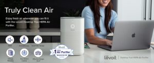 Russell Hobbs RHAP2001B Ozone Free Compact Air Purifier, Captures Bacteria, HEPA Filter for 99.5% of Particles, Air Cleaner for Allergies, Odour, Dust, Smoke, Multi Colour LED Display, Black