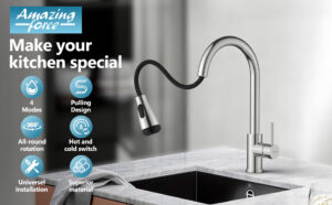 Kitchen Taps with Pull Out Spray Chrome-AMAZING FORCE 4 Spray Modes Hot and Cold Mixer Tap for Kitchen Sink,High Arc Kitchen Sink Tap,Single Handle 360º Swivel Spout with UK Standard Fittings