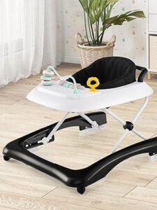Maxmass 2-in-1 Baby Walker, Foldable Infant Activity Center with 3 Adjustable Heights, Wheels, Padded Seat and Removable Double Tray, Toddler Push Along Walker for 6-14 Months (Gray)