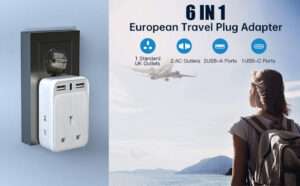 European to UK Plug Adaptor Travel Adapter with 3 USB Ports