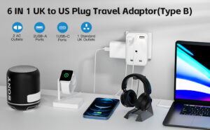 UK to US Plug Travel Adapter, Aodeng with 2 Shaver Adapter Plug UK & 1 Type C Port & 2 USB Ports, American Plug Adapter UK to US USA Travel Adapter from UK to USA, Canada, Thailand, Mexico (Type B)