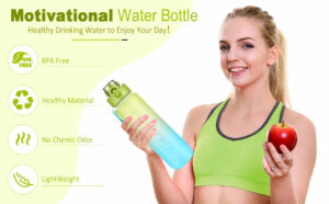 Water Bottle 1l, Drinks Bottle Leak Proof, Water Bottle with Time Markings and Filter, Motivational Sports Water Bottle BPA Free for Running ,cycling, Gym, School & Office