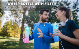 AOHAN Water Bottle 1l, Sports Water Bottle with Time Markings, BPA Free Drinks Bottle, Leakproof Motivational Water Bottle with Filter and Brush Perfect for Gym,Running,School,Cycling