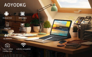 Tablet 10 Inch Android 10, 4G LTE Tablet 6 GB RAM + 128 GB ROM, Octa-Core, 5G WiFi Tablet with Dual SIM Card Slots, 7000 mAh Battery, IPS HD Display, Dual Cameras, GPS, Bluetoorh, Tablet Stand
