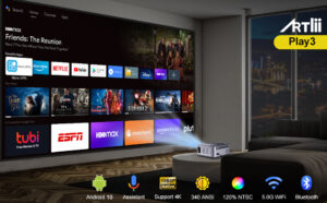 【Auto Focus & Keystone】Projector with Netflix-Certified, Artlii Amento Video Smart Projector 4K, Zoomable Home Cinema Projector with Dolby Audio,MAX 300'' Display, Bi-directional Bluetooth 5.1&5G Wifi