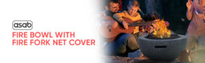 ASAB Fire Pit | Outdoor Firepit BBQ for Garden and Patio | Wood Burning Fire Pit Magnesium Oxide Base | Brazier Fire Bowl With Fire Fork Net Cover | Outdoor Grill BBQ Round Fire Pi