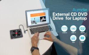 Aumdie External CD DVD Drive for Laptop, USB 3.0 & Type-C CD DVD +/-RW Burner Reader, CD ROM Drive DVD Player for Laptop PC Windows 11/10/8.1/7/Linux Mac Macbook Pro Air (8-IN-1 SD/TF Card Reader)