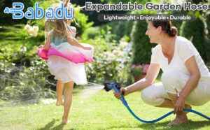 BABADU Expandable Garden Hose Pipe – 100Ft Flexible Expanding Hose with 8 Modes Spray Gun, Extendable Water Hose with 3/4″, 1/2″ Connectors for Gardening(Black)