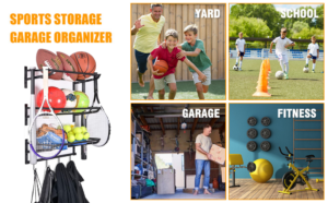 Ball Storage Rack, Football Stand, Ball Storage Garage, Ball Holder, Sports Equipment Storage For Garage, Basketball Organizer Rack With Basket, Toy/Sports Gear Storage Indoo