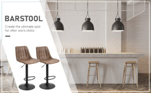 HOMCOM Set of 2 Bar Stool Adjustable Height Swivel Footrest and Base for Breakfast Bar, Kitchen and Home, Brow