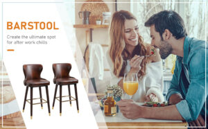 bigzzia Barstool, Bar Stools Set of 2 PU Leather Swivel Height Adjustable Bar Chairs With Backrest For Breakfast Bar, Counter, Kitchen and Home Barstools